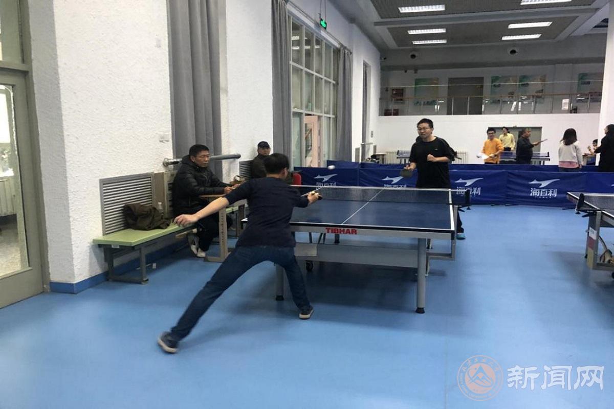 在校工会及院领导代表发言完毕后,友谊赛正式拉开了序幕。此次赛事总共分为单打淘汰赛和团队赛两个部分。单打淘汰赛采取了四台同时进行,三局两胜11分制的赛制,选手们纷纷拿出看家本领,直拍、横拍、扣球、旋转球、弧线球等都在大赛中得到一一呈现。那边乒乓老手快攻打法先发制人,反手发急球强攻当仁不让,却只见这旁新秀以守为攻,兵来将挡,水来土掩,一个单步侧身攻,越到了一旁,你来我往,好不热闹。团队赛采用五人参赛制,按抽签决定出场顺序,各打一局,传承了一团为一体、共同作战的协作精神,团队战略部署、自身技巧心得的互相传授,教师们的关系在团体赛中得到了进一步拉近与升华,真正体现了“以球传情,以心会友”。