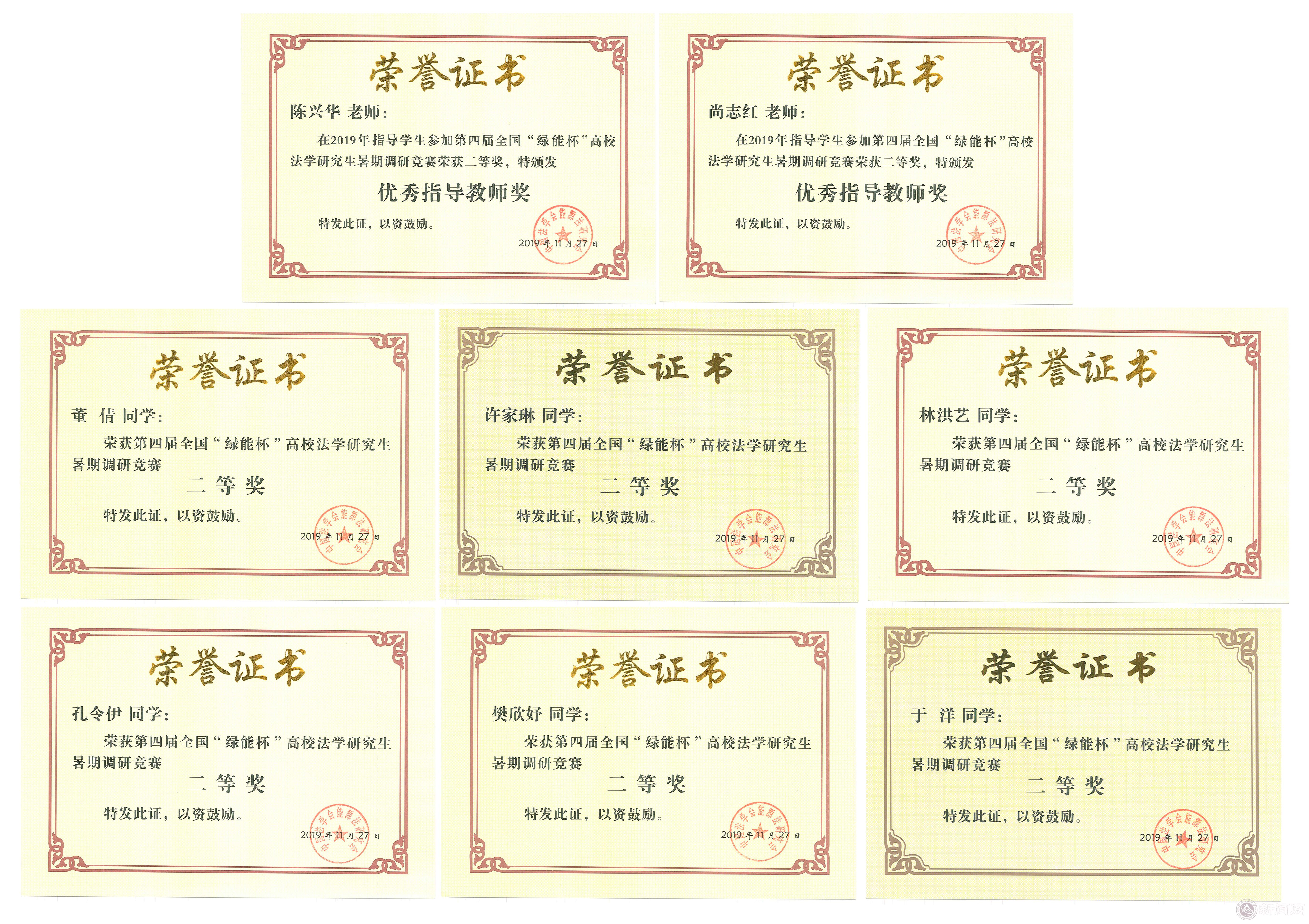 日前,由中国法学会能源法研究会主办的第四届全国“绿能杯”高校法学研究生暑期调研竞赛结果正式揭晓,米兰师生在21家参赛高校中脱颖而出,斩获二等奖,来自文法学院法学专业研究生董倩、许家琳和本科生樊欣妤、孔令伊、林洪艺、于洋等六名同学,陈兴华、尚志红两位老师获颁证书。