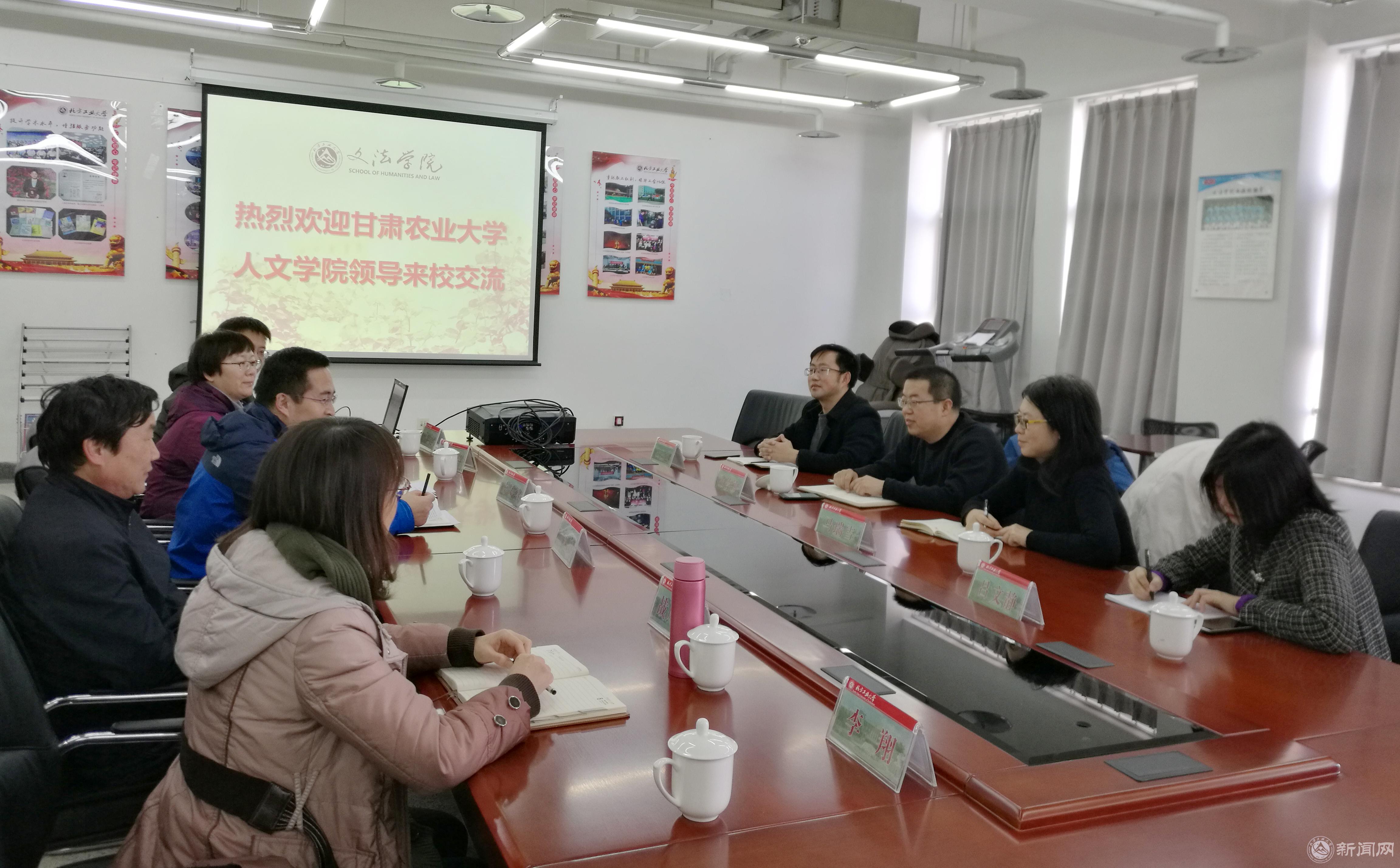 12月17日下午,甘肃农业大学人文学院英语系马瑞雪主任一行4人来米兰调研英语专业教学与大学英语教学改革工作。文法学院党委书记袁本文、副院长袁凤识、公共英语系主任高越、副主任战凤梅、英语系教师李翔及高黎老师参加了会谈。