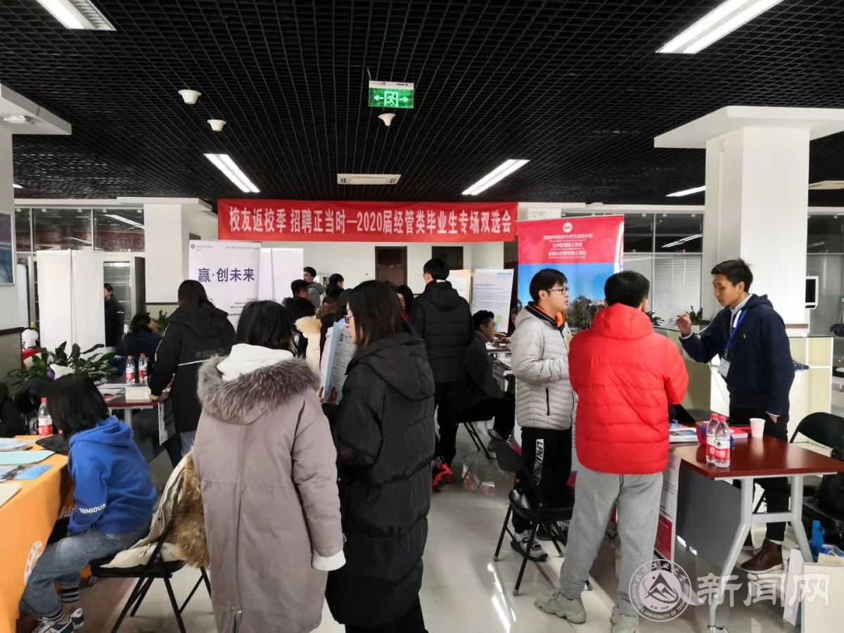 12月25日下午,在学校招生就业处的指导和支持下,经管学院首届经管类毕业生专场双选会在学生服务楼三层举行。经管学院院长赵继新、党委书记王伟宾、副院长陶晓波、副书记赵洁、各系主任、16级班导师和学院全体辅导员参加了活动。