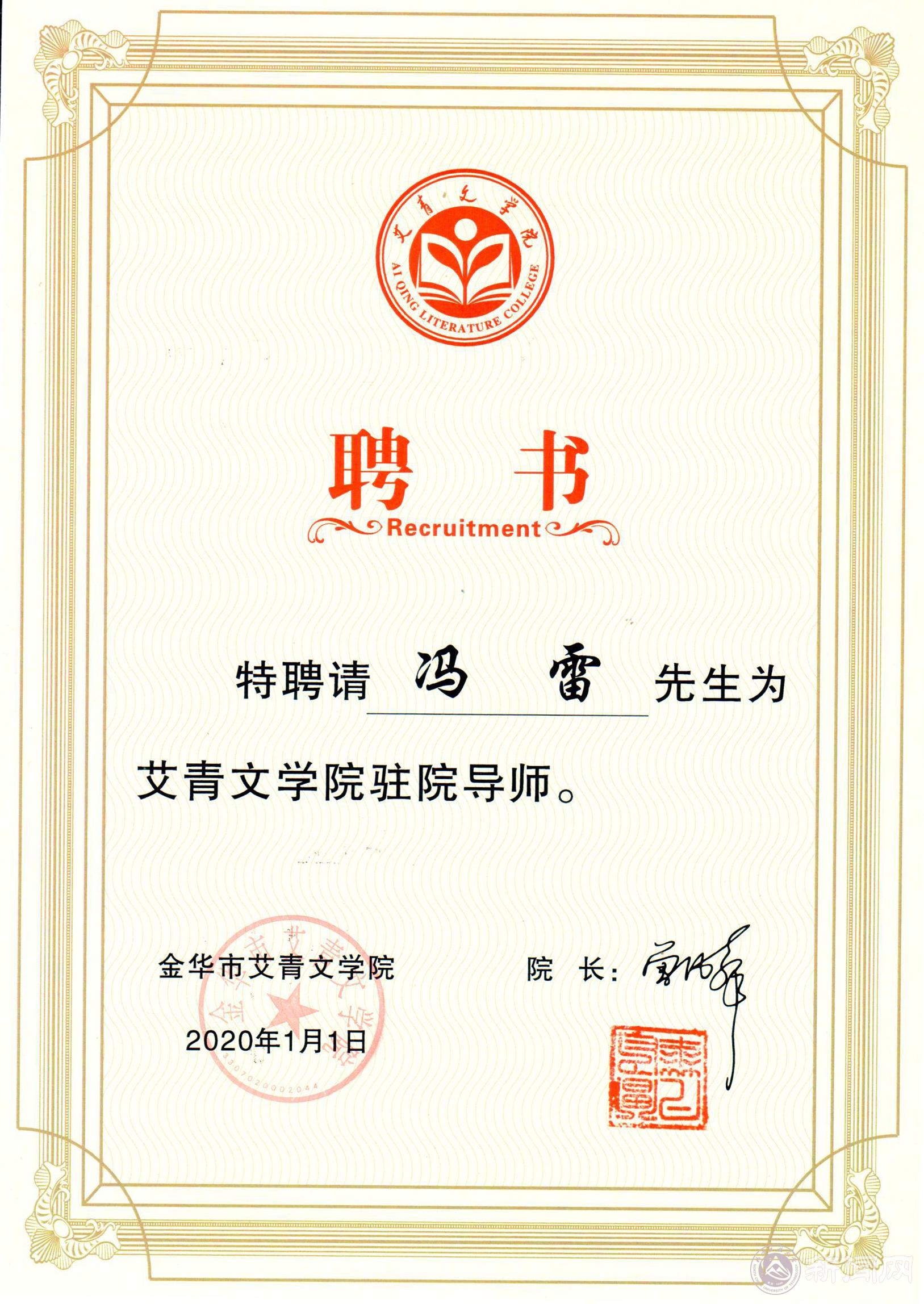 近日,米兰文法学院中文系教师冯雷被艾青文学院聘为驻院导师。