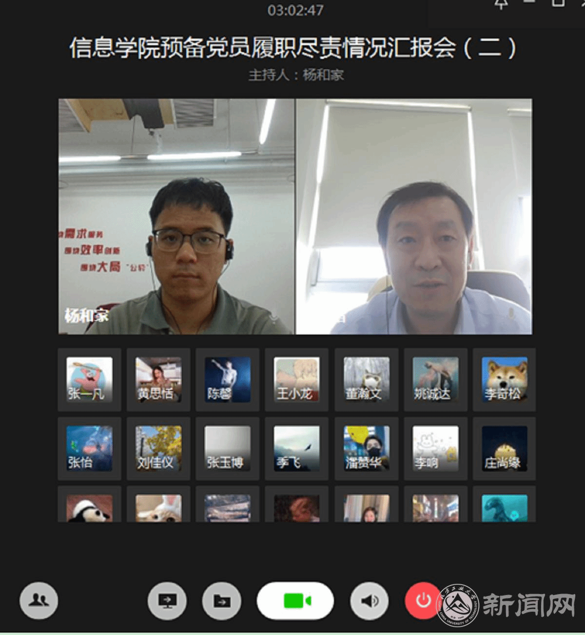 为加强对预备党员的教育和管理,综合考察预备党员一年预备期期间先锋模范作用的发挥,信息学院党委于5月21日和22日下午在企业微信召开了两场“预备党员履职尽责情况汇报会”。学院党委委员、支部书记、学生党建中心成员对63名预备党员在预备党员期内的履职尽责情况进行了考核评价。会议由学院学生党建中心副主任杨和家主持。