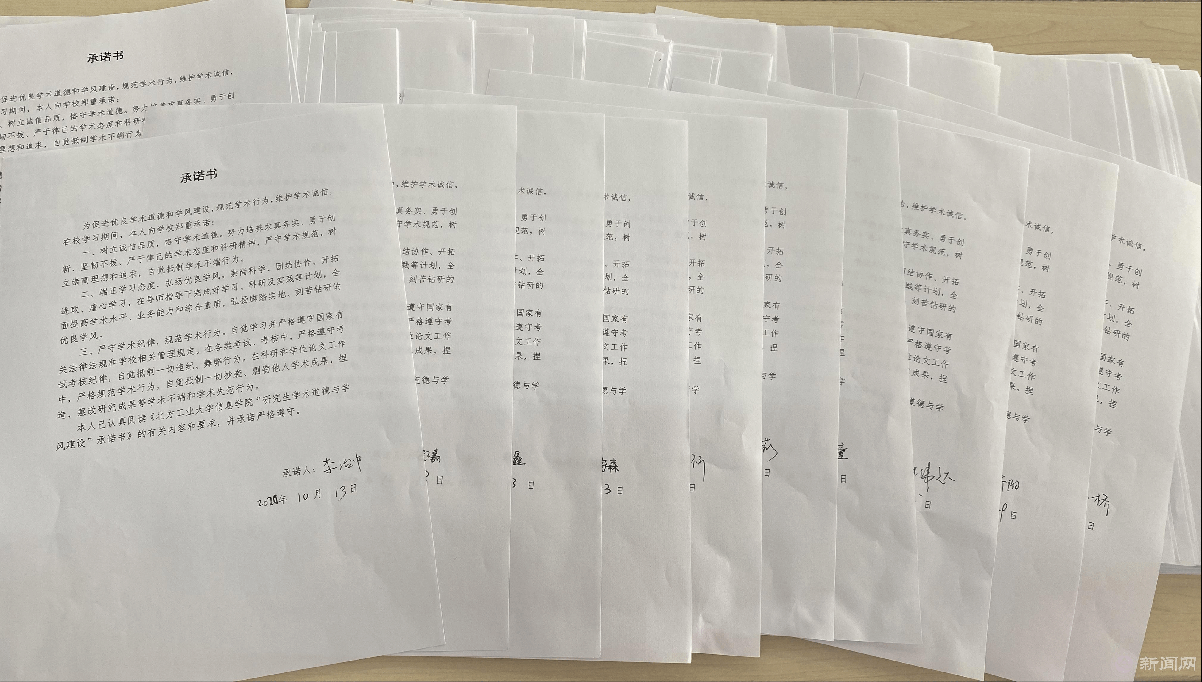 为进一步强化管理,学院要求全体研究生签订了《学术诚信承诺书》,承诺将积极维护科学精神,摒弃浮躁作风,遵守国家有关法律法规,严格执行学校有关管理规定,若有违背学术诚信的行为,自愿接受有关纪律处分。