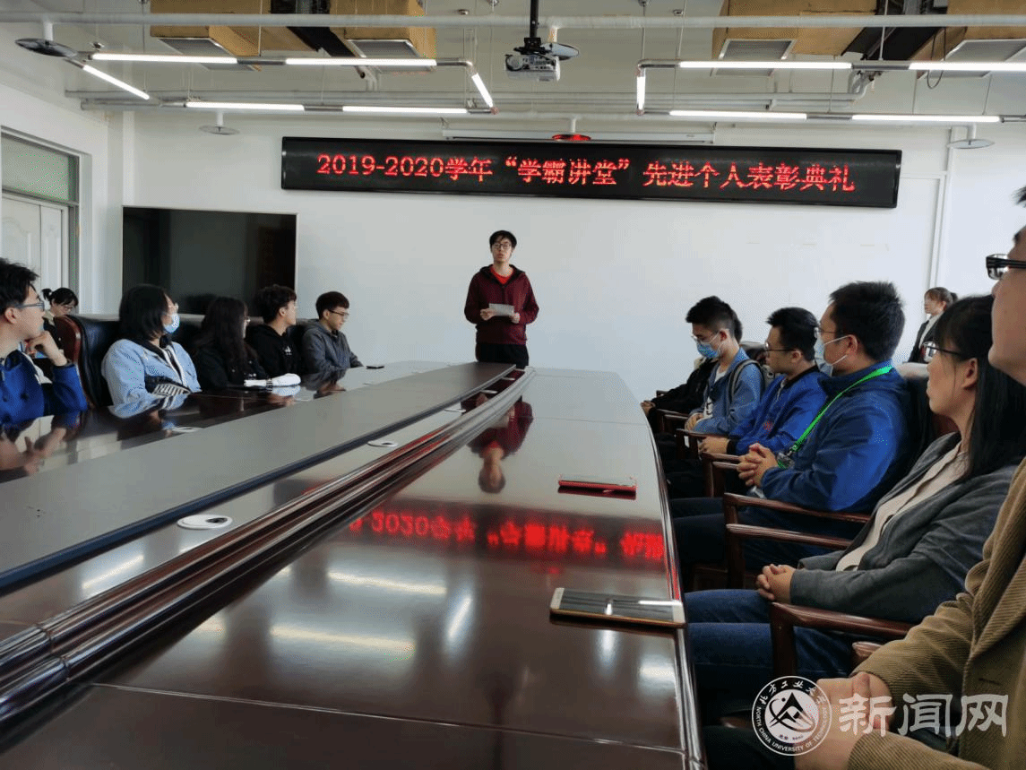 主持人宣读并介绍了2019-2020学年度“学霸讲堂”优秀课堂讲师和优秀督导员的先进事迹,学院党委副书记赵帅和团委书记刘霁炜老师分别为他们颁发了奖状。