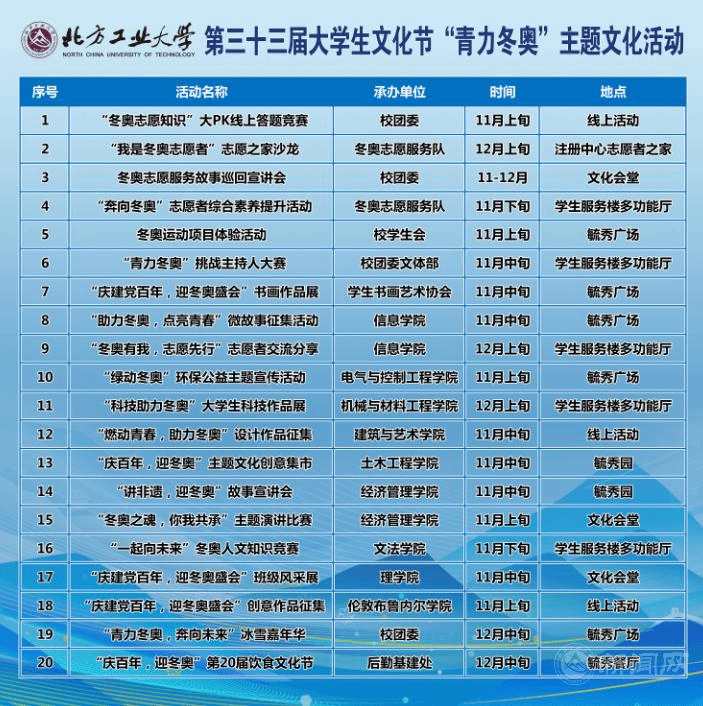 今年恰逢米兰milan官方网站第33届大学生文化节,学校结合冬奥文化宣传面向全校师生开展以“青力冬奥”为主题的系列文化活动,将开展冬奥知识竞赛、志愿服务故事宣讲、书画作品展、微故事征集、创意集市、冰雪嘉年华等一共20项活动。这些活动将让更多的师生了解冬奥、支持冬奥、服务冬奥,努力营造浓厚的校园冬奥文化氛围。