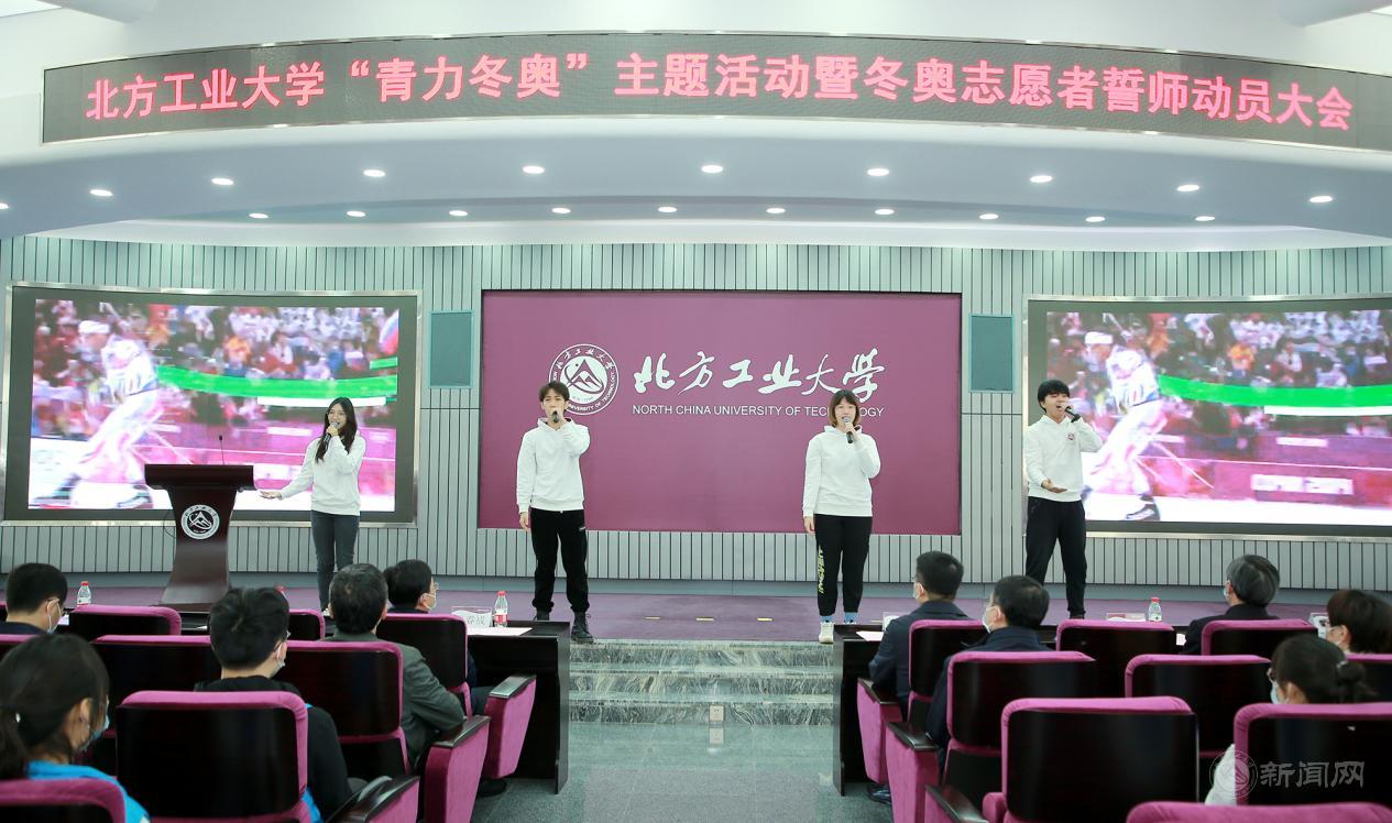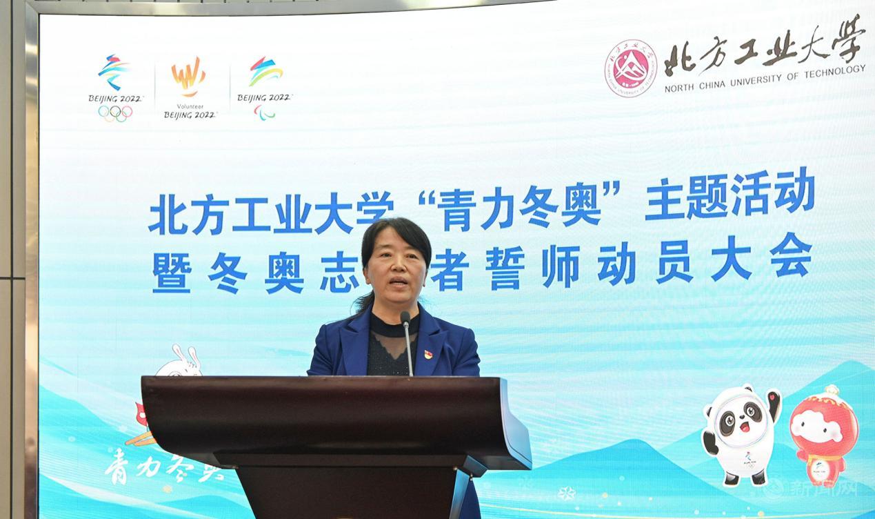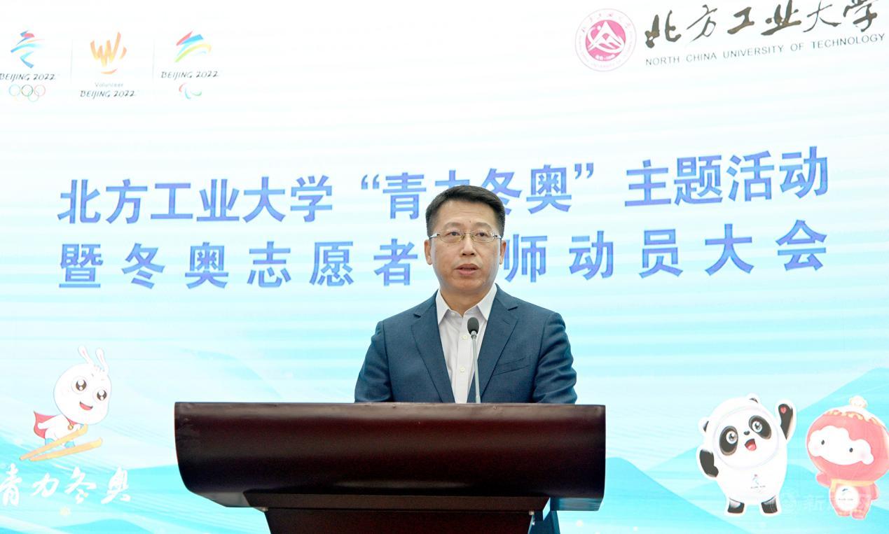 缪劲翔在誓师大会上讲话。他指出,北方工大近年来以高度的使命感和责任心为北京冬奥会的筹办不遗余力,做了大量卓有成效的工作。他向前期参与冬奥会筹办付出努力的老师和同学们表示感谢。他强调,作为新时代的中国青年,我们有幸见证并全程参与这一奥运盛会,应该倍感自豪、倍加珍惜。他指出,米兰派往北京冬奥组委制服与注册中心的志愿服务团队,上岗时间最早、服务时间最长、默默奋斗在幕后,是值得光荣和骄傲的。他向全体志愿者提出三点希望:一是提高政治站位,为祖国争光,为学校添彩,把服务好、保障好冬奥会当作一次重大的政治任务,当作一堂生动的思想政治教育课,在志愿服务中充分展示当代中国青年、北方工大学子的青春风采。二是提高工作标准,精精益求精,万万无一失,要以最高标准、最严要求、最大决心,向祖国、向世界交出一份圆满的答卷。三是提高安全意识,严格落实疫情防控各项要求,做到听从指挥、科学防疫,把生命安全和身体健康放在第一位。最后,他号召全体志愿者大力弘扬奥林匹克精神,积极践行志愿服务理念,为举办一届简约、安全、精彩的冬奥盛会贡献属于北方工大人的青春力量。