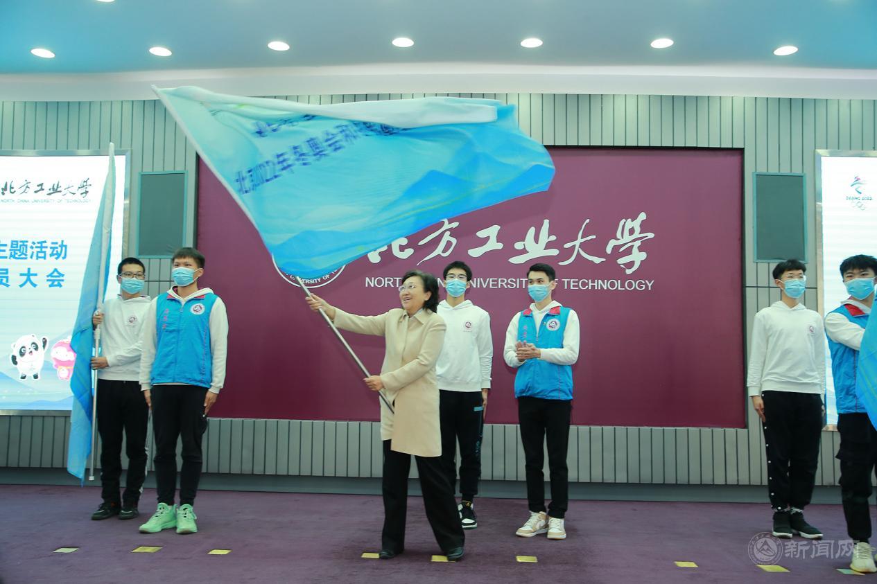 副校长栗苹为冬奥志愿服务队授旗