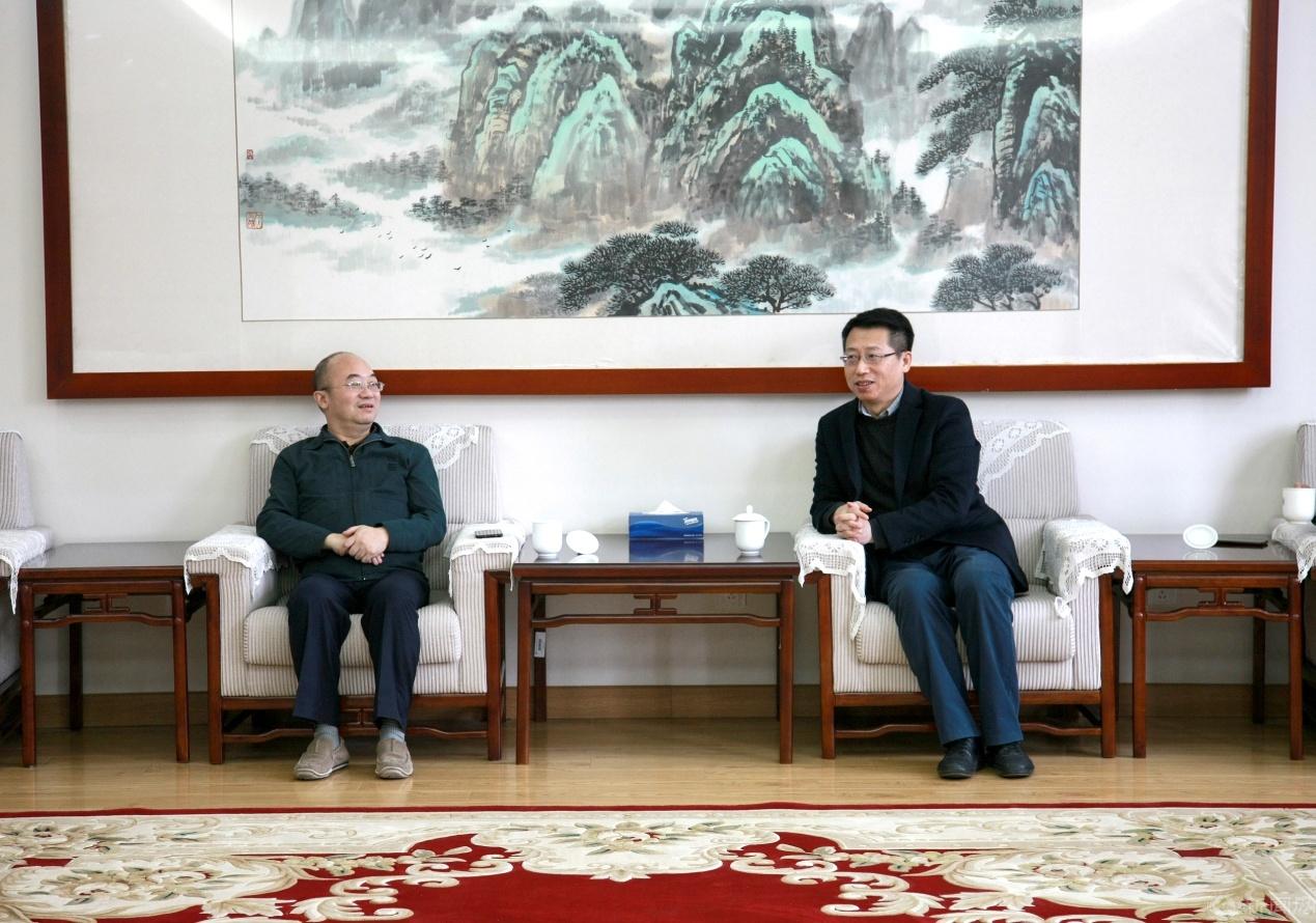 报告会前,校党委书记缪劲翔在敦品楼322接待室会见了冯刚教授。