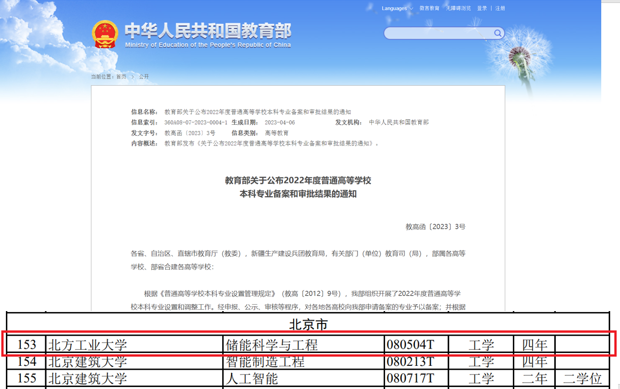 4月6日,教育部发布《关于公布2022年度普通高等学校本科专业备案和审批结果的通知》,米兰成功获批储能科学与工程本科新专业。
