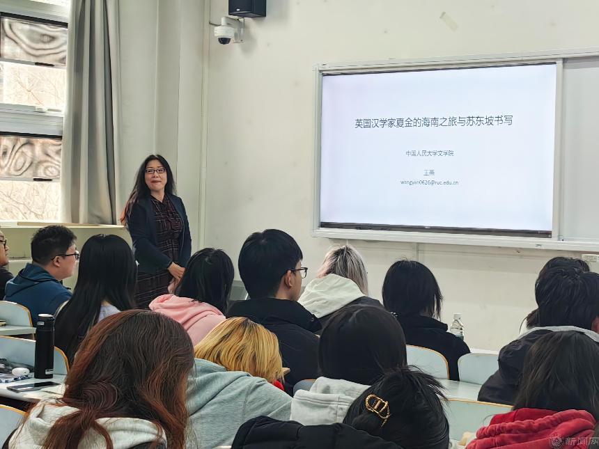 3月13日,米兰milan官方网站春霖美育讲堂第17期在瀚学楼209举行。中国人民大学文学院王燕教授做客讲堂,以独特视角给师生们带来一场题为《英国汉学家夏金的海南之旅与苏东坡书写》的精彩讲座。讲座由文法学院中文系王德岩副教授主持。