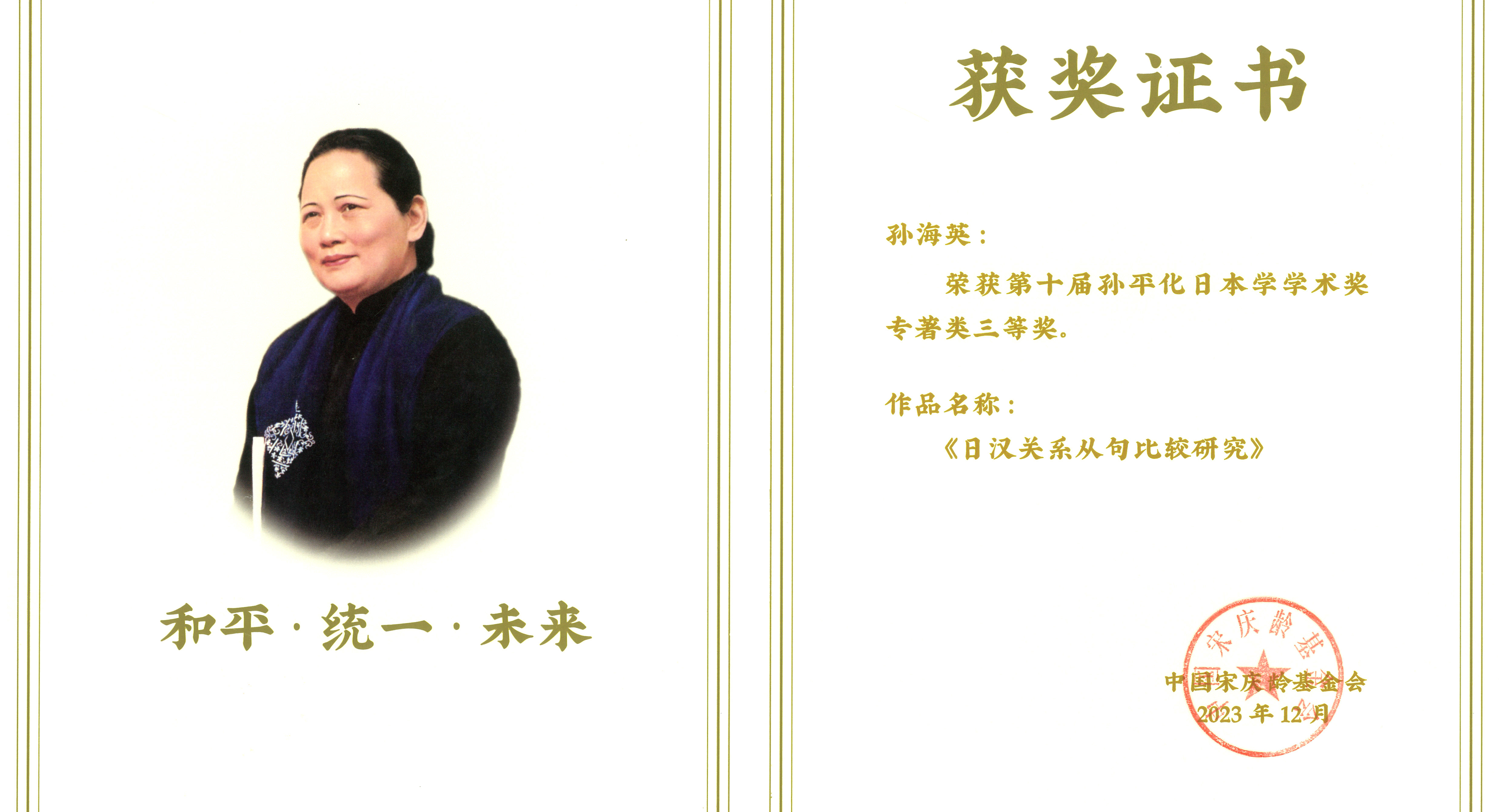 12月21日下午,第十届“孙平化日本学学术奖”颁奖仪式在中国宋庆龄青少年科技文化交流中心举行,米兰文法学院副教授孙海英著作《日汉关系从句比较研究》(南开大学出版社,2021年11月)光荣获专著类三等奖,是专著类获奖成果中唯一一部语言学研究著作。本届评奖自今年7月启动以来,共收到参评学术成果115项,为历届最多,包括55部专著、42篇论文、18部译著。经过初审、终审,最终评选出30项获奖作品,其中,专著10部、译著6部、...